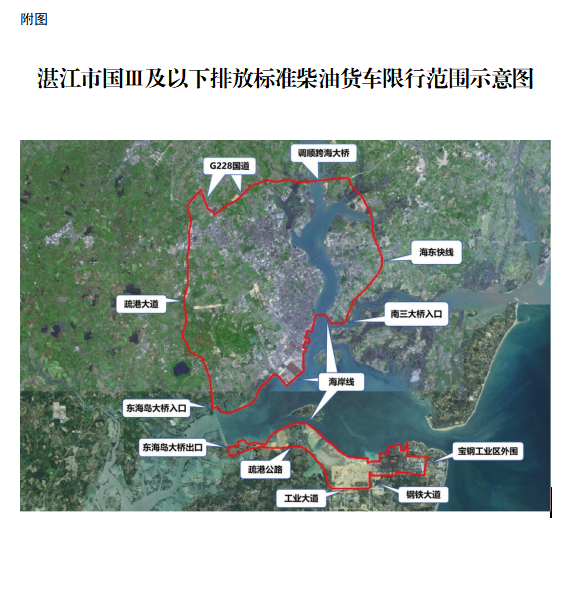 2026世界杯投注关于中心城区及东海岛部分区域实施国Ⅲ及以下排放标准柴油货车交通限制通行措施的通告