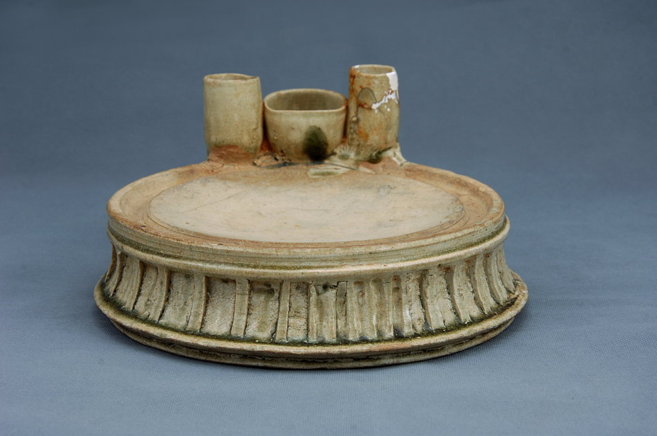 唐青釉三注辟雍砚(高州良德水库M3出土) 高12、口径22、底径