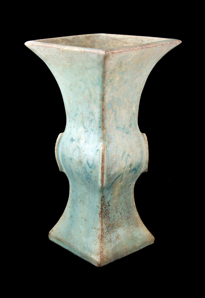 清石湾窑绿釉出戟方觚 高39.5口径19.1底径