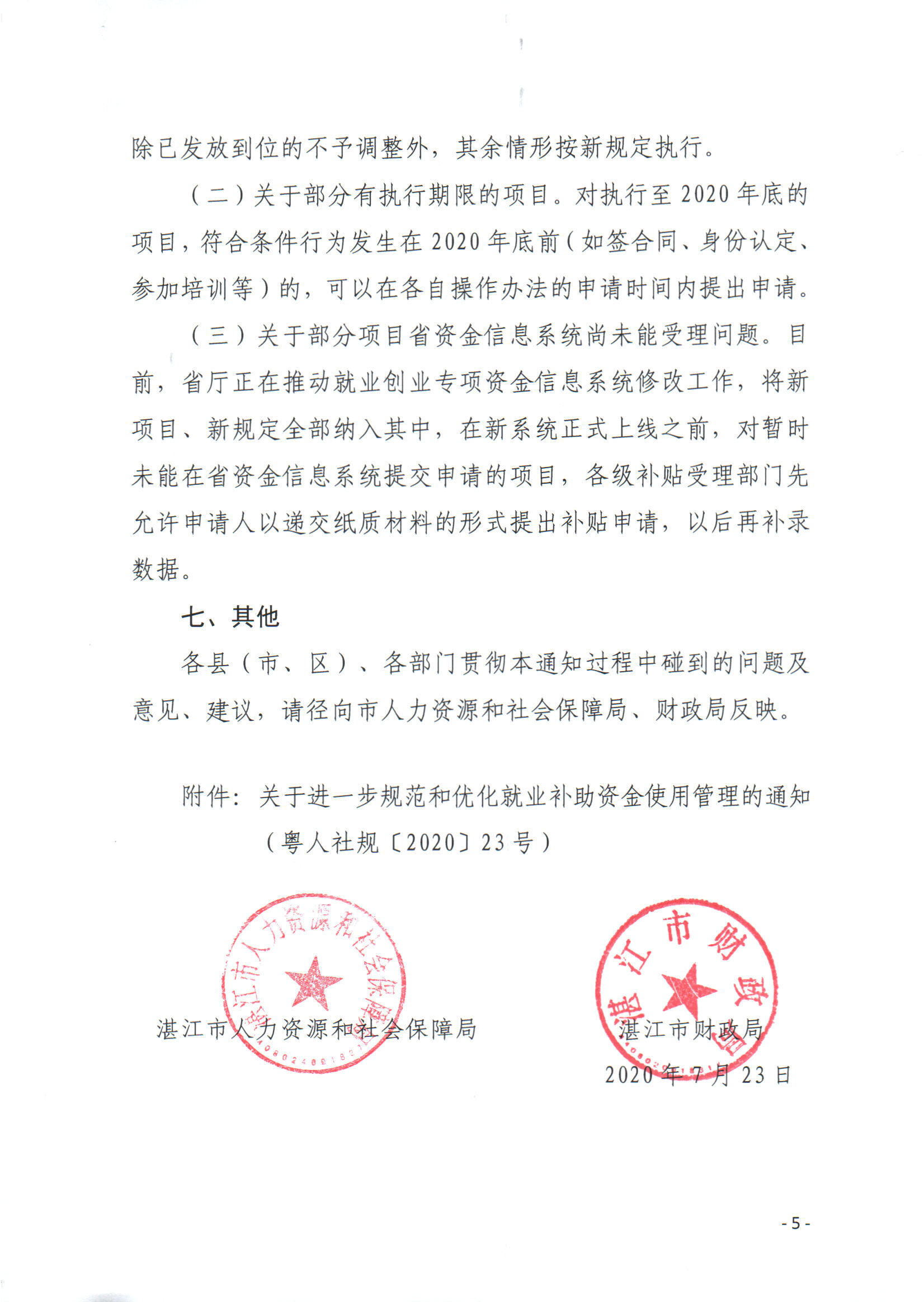 关于进一步规范和优化就业补助资金使用管理的通知(粤人社规〔2020〕23号).pdf