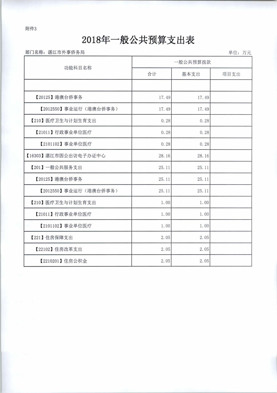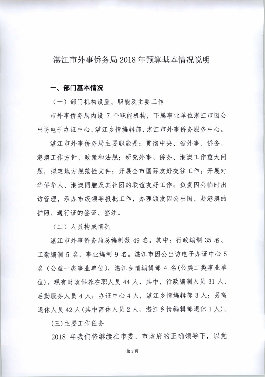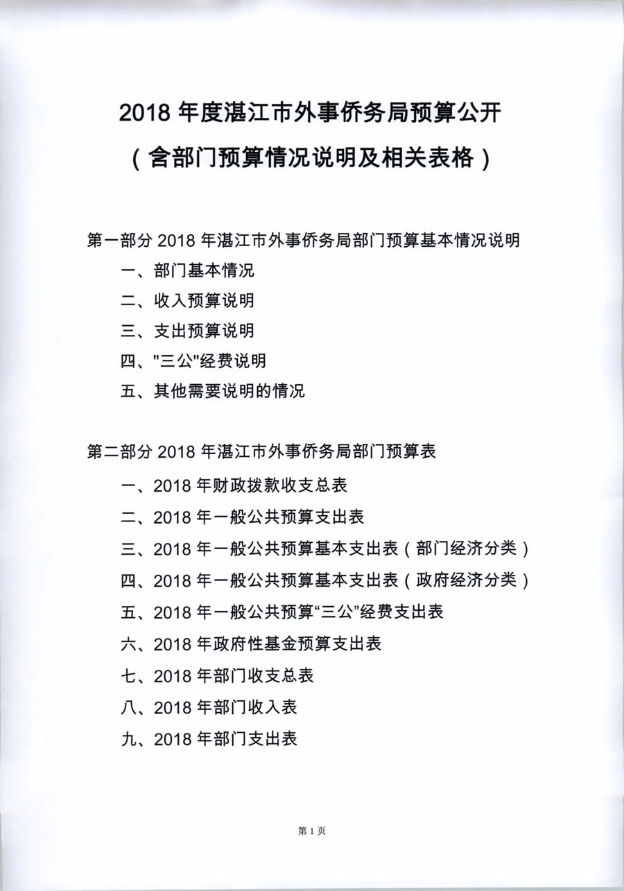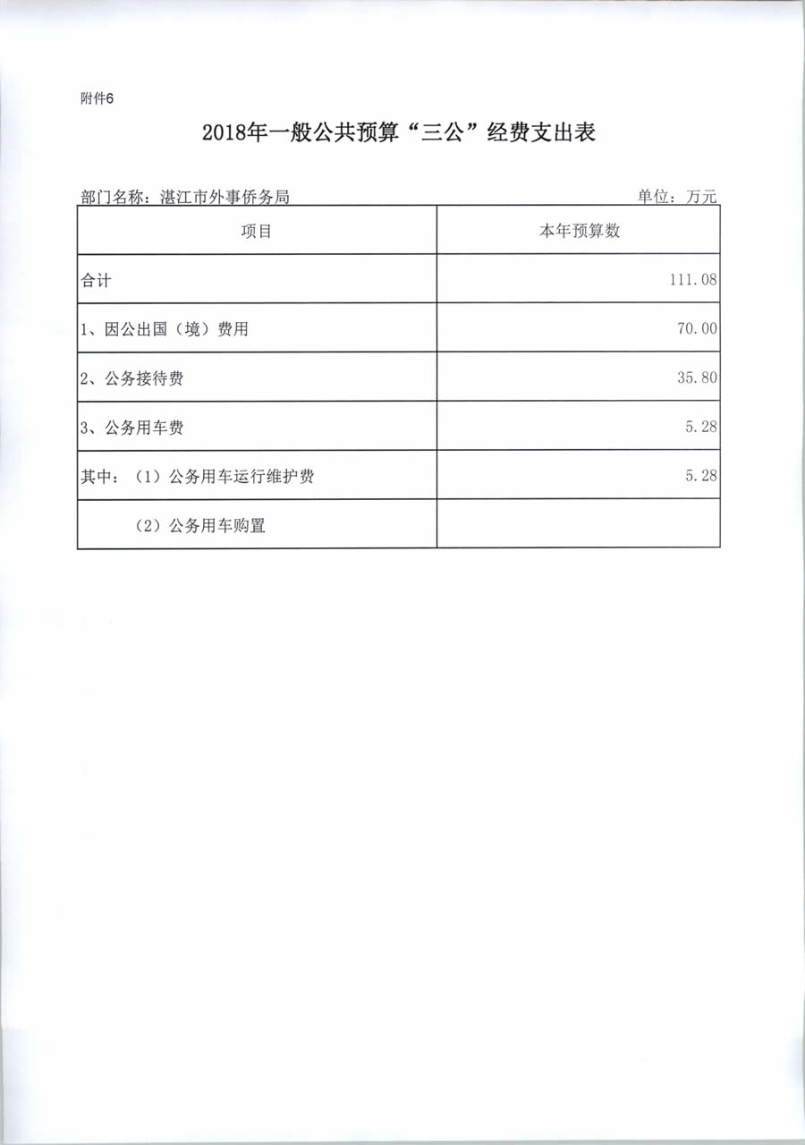 2018年度湛江市外事侨务局预算公开(含部门预算情况说明及相关表格)