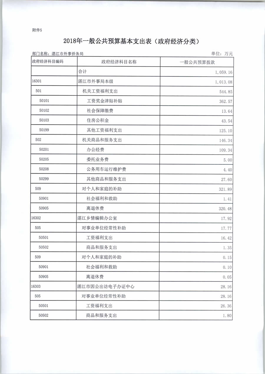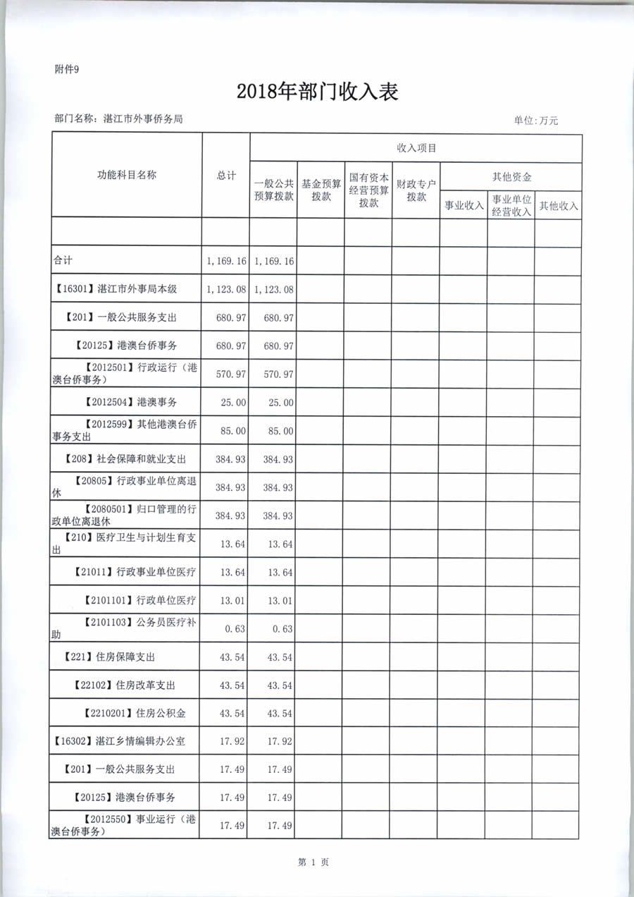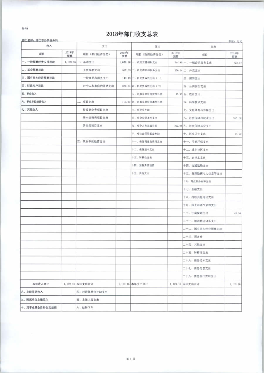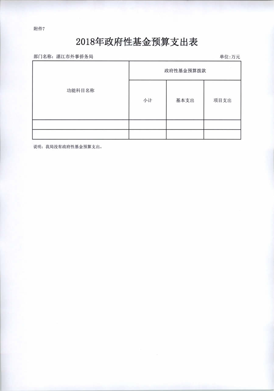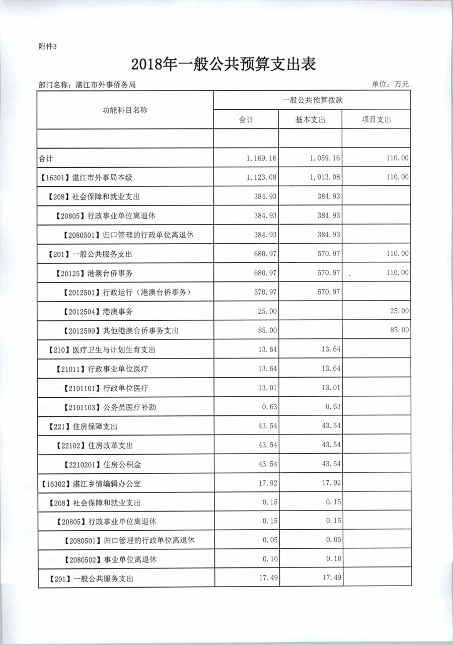 2018年度湛江市外事侨务局预算公开(含部门预算情况说明及相关表格)