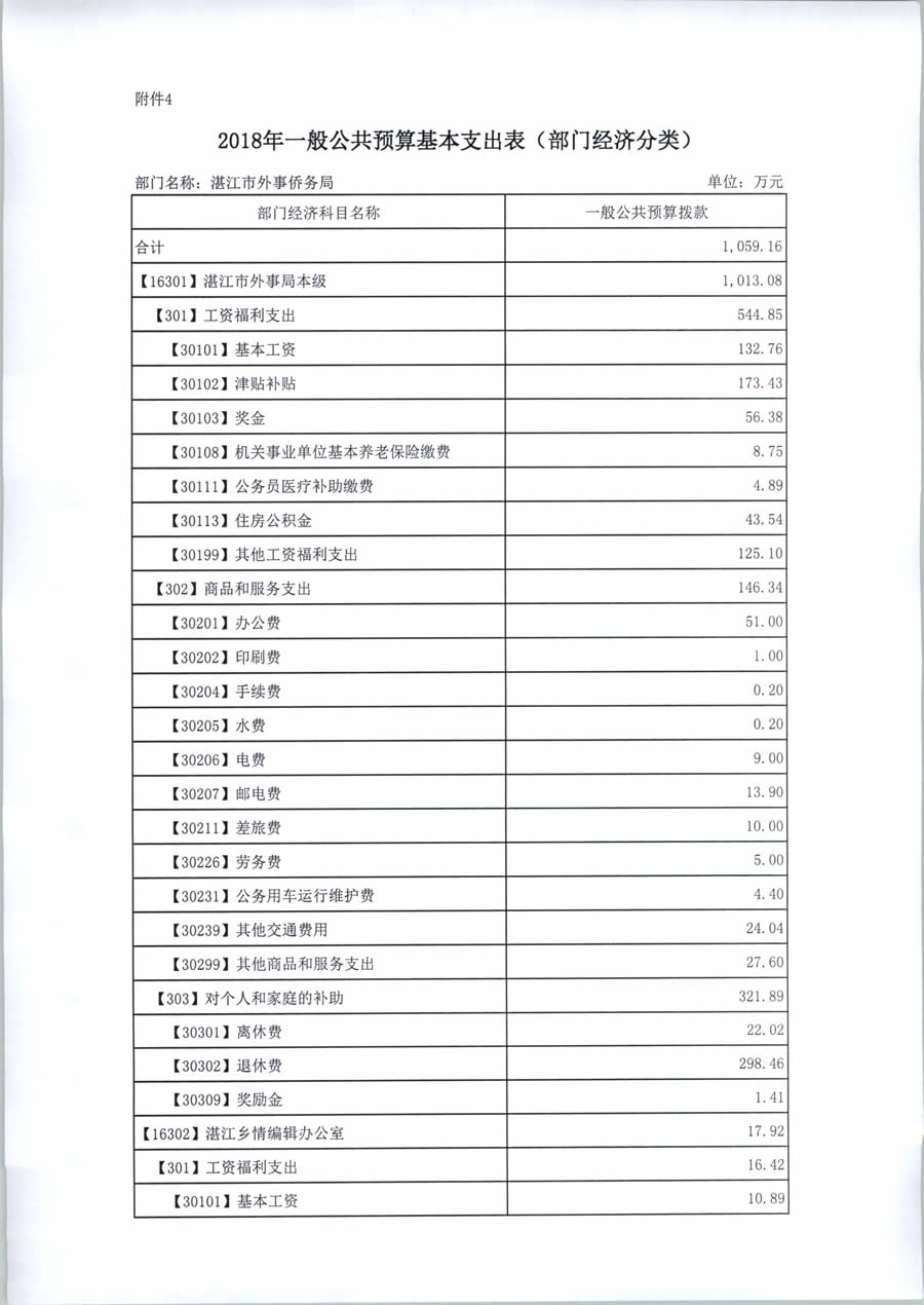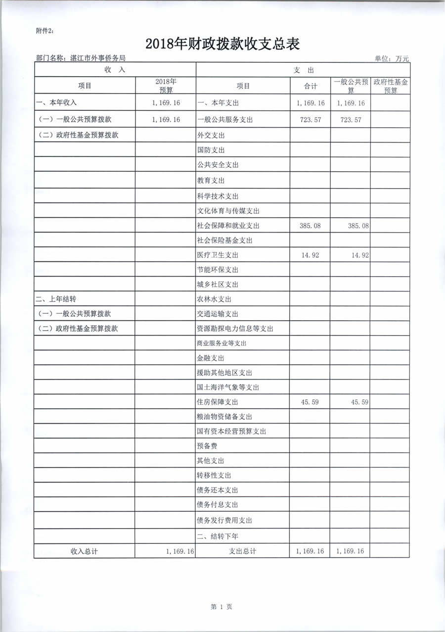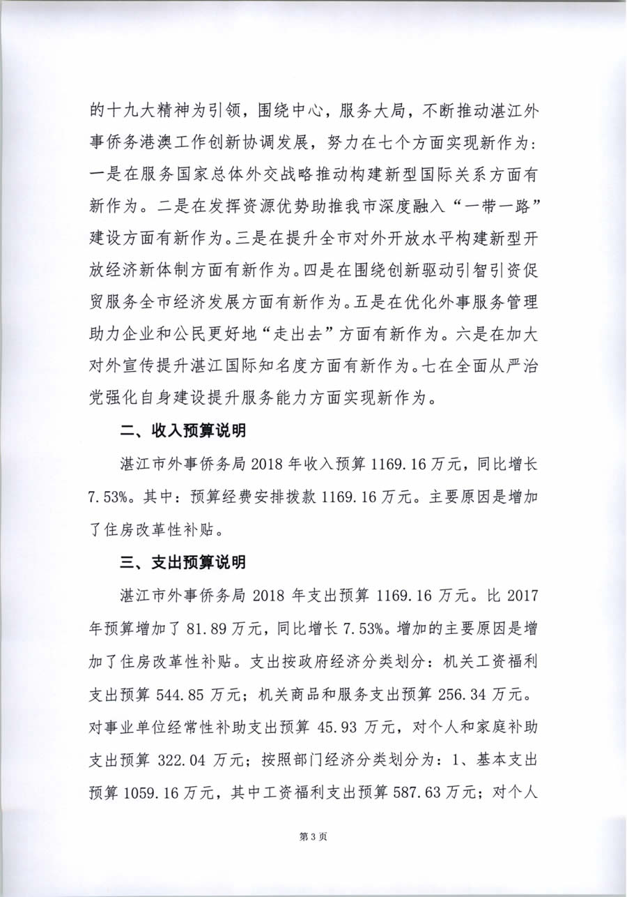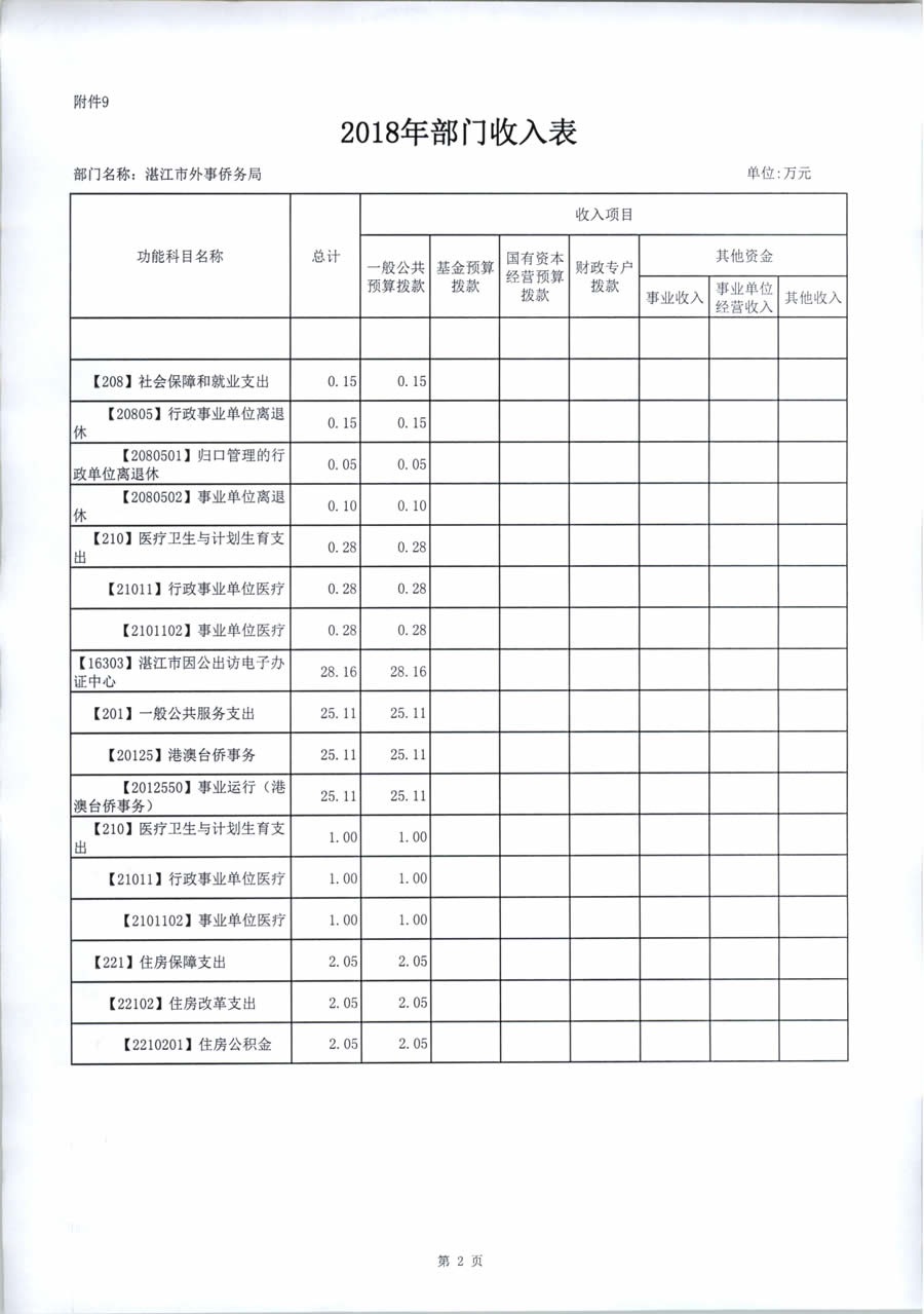2018年度湛江市外事侨务局预算公开(含部门预算情况说明及相关表格)
