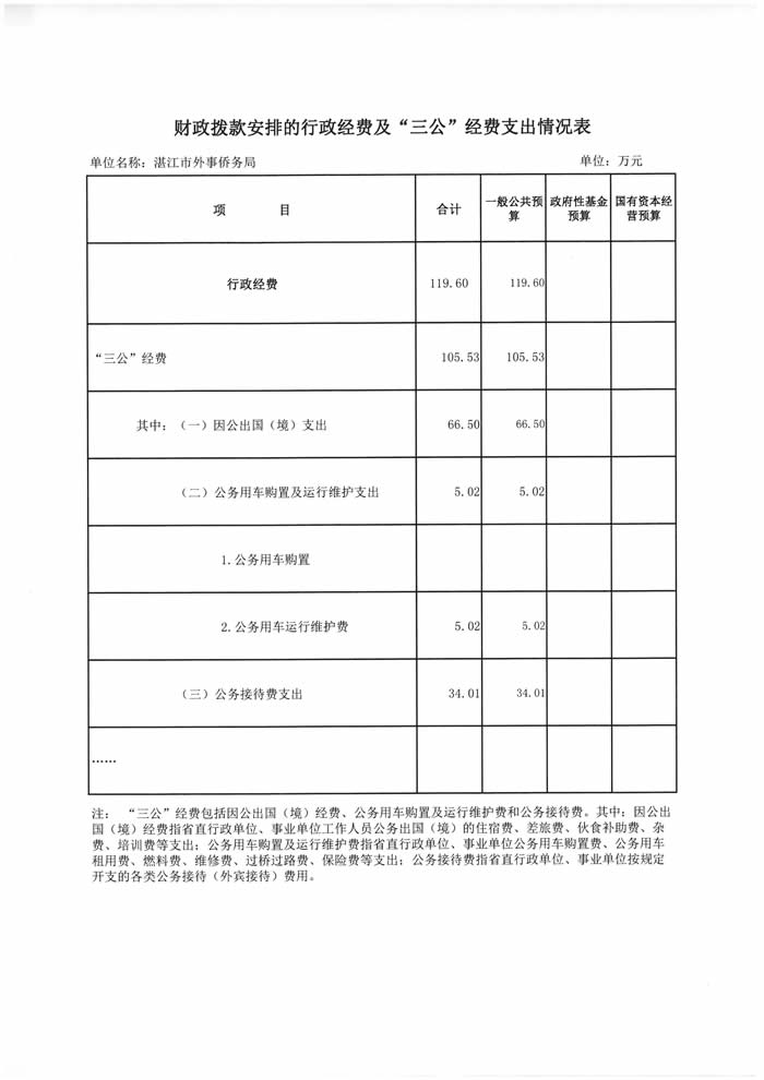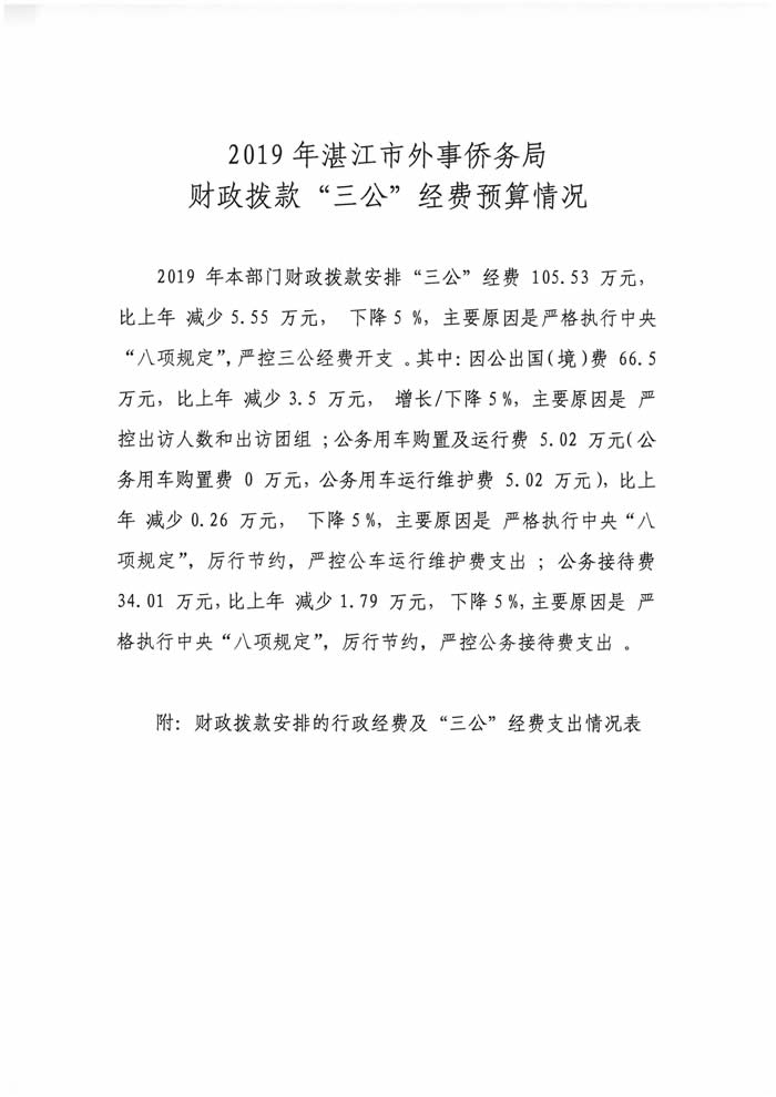 附件:2019年湛江市外事侨务局财政拨款“三公”经费预算情况