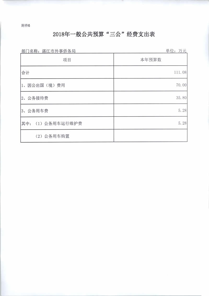 2018年湛江市外事侨务局“三公”经费支出预算情况说明