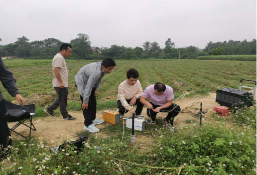 湛江市地震局技术骨干在省局专业技术人员指导下开展断层气测量的选点、打孔、仪器设备的连接、参数设定及采集数据等相关工作,通过现场操作演示,我们对断层气的测量有了进一步的认识。这极大提高我们业务工作的专业水平,为我市后续开展断裂带断层气野外测量工作奠定坚实基础。