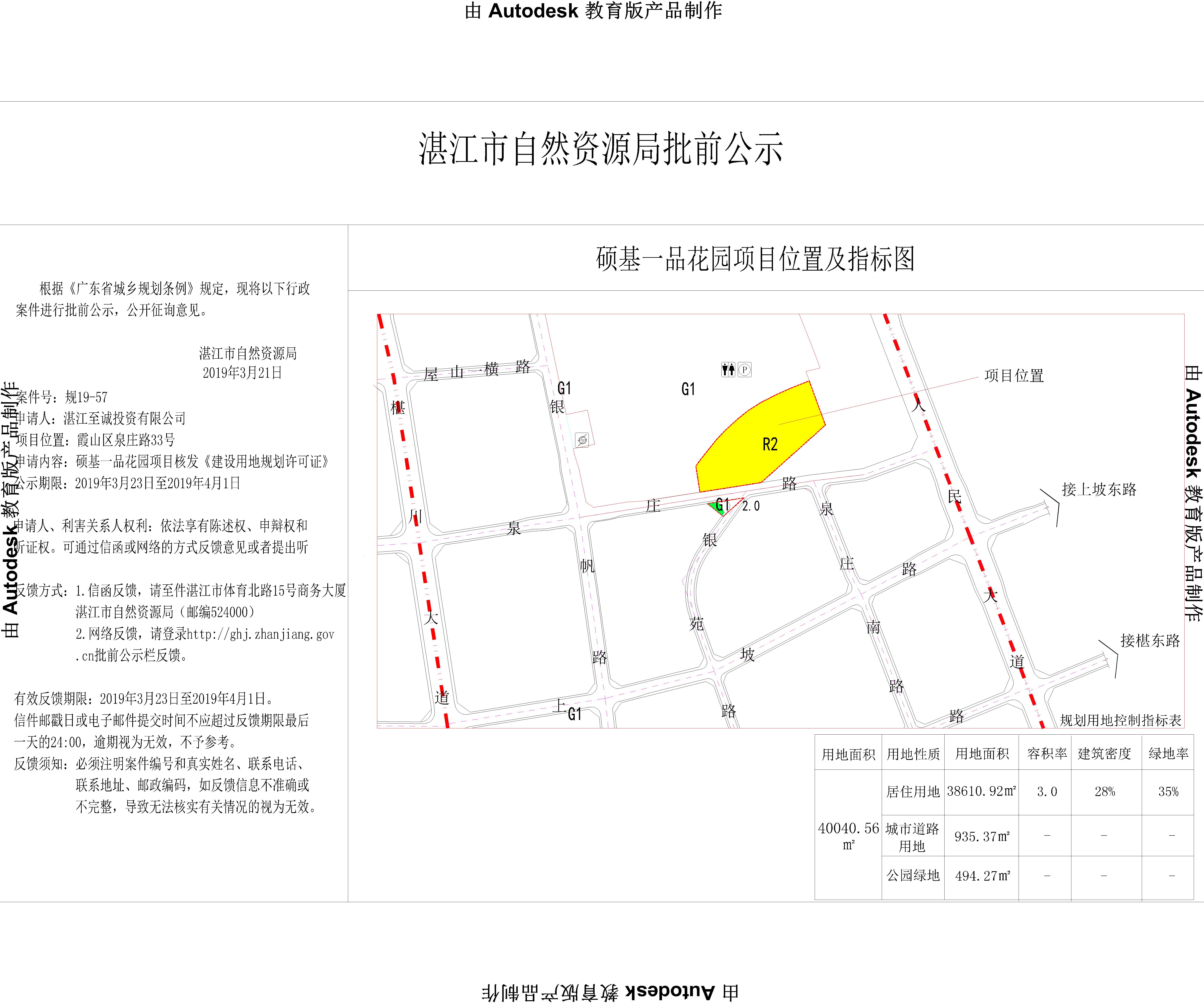 硕基一品花园项目核发《建设用地规划许可证》批前公示