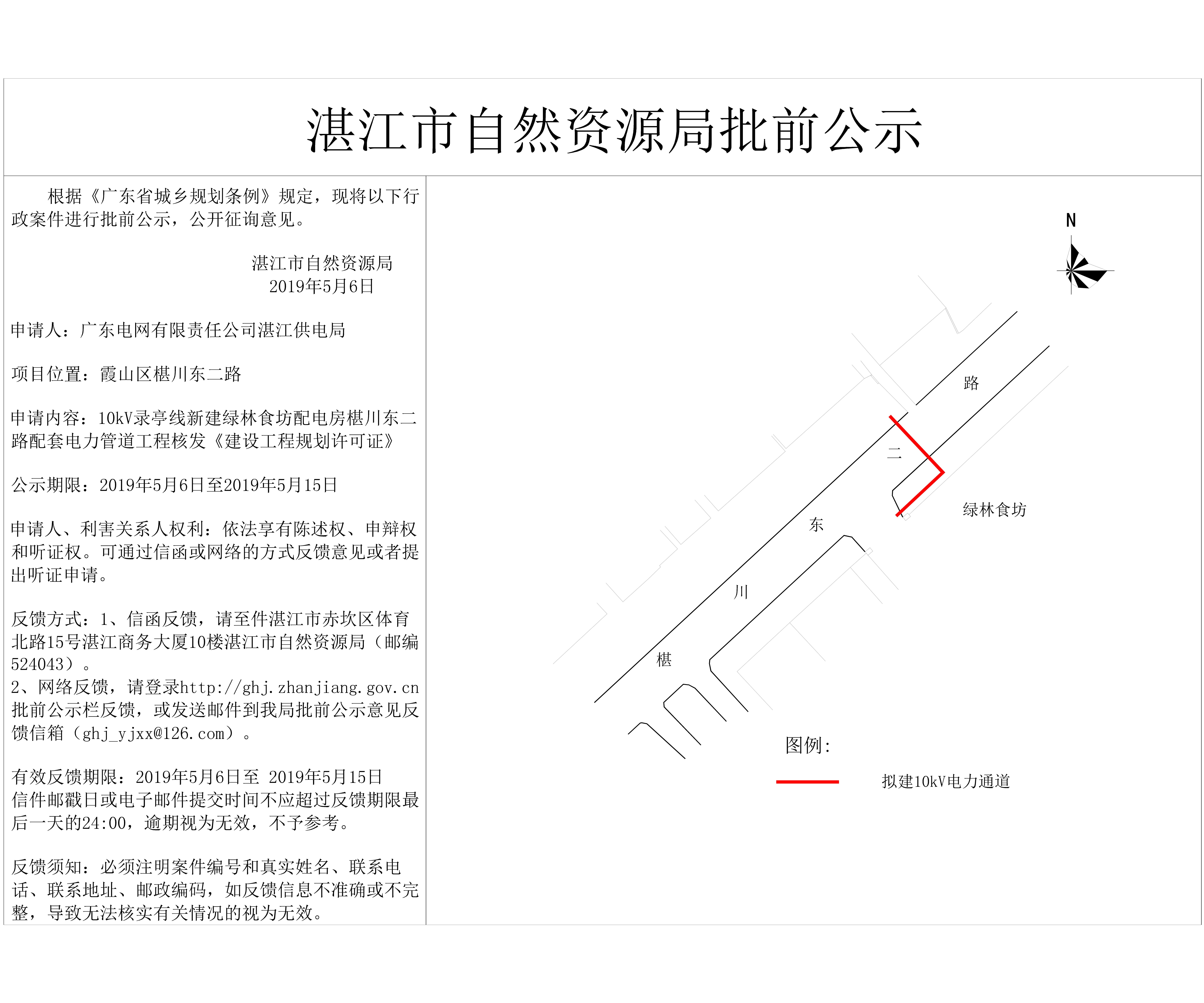 10kv录亭线新建绿林食坊配电房椹川东二路配套电力管道工程核发《建设工程规划许可证》批前公示